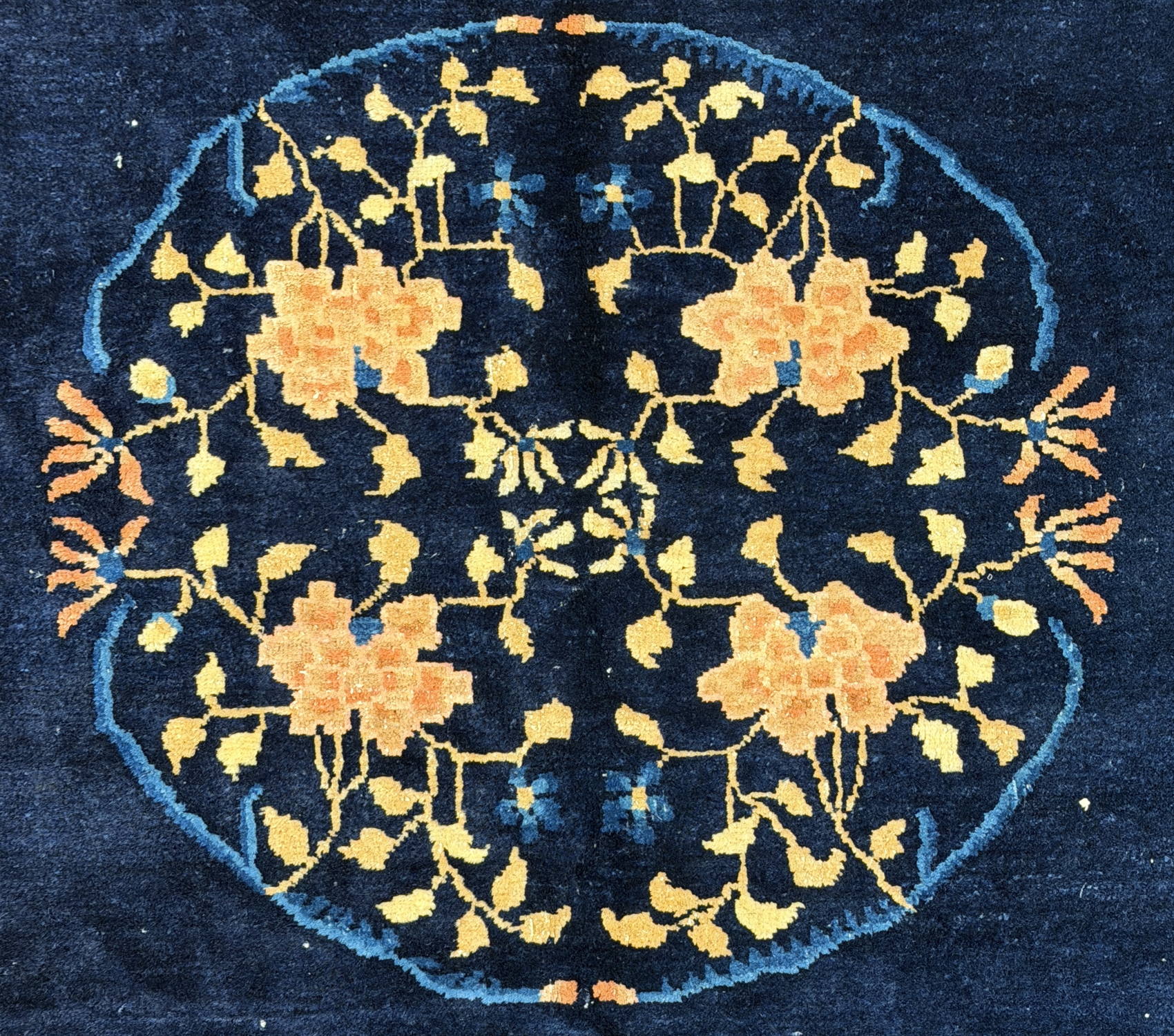Good Looking Good Antique Chinese Peking Rug with a Central Round Medallion Floral Design; Made in China, 1900 – 1910
