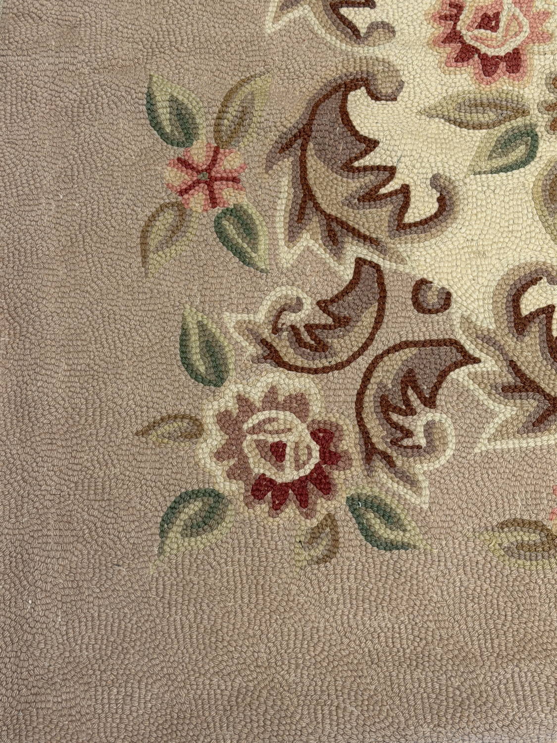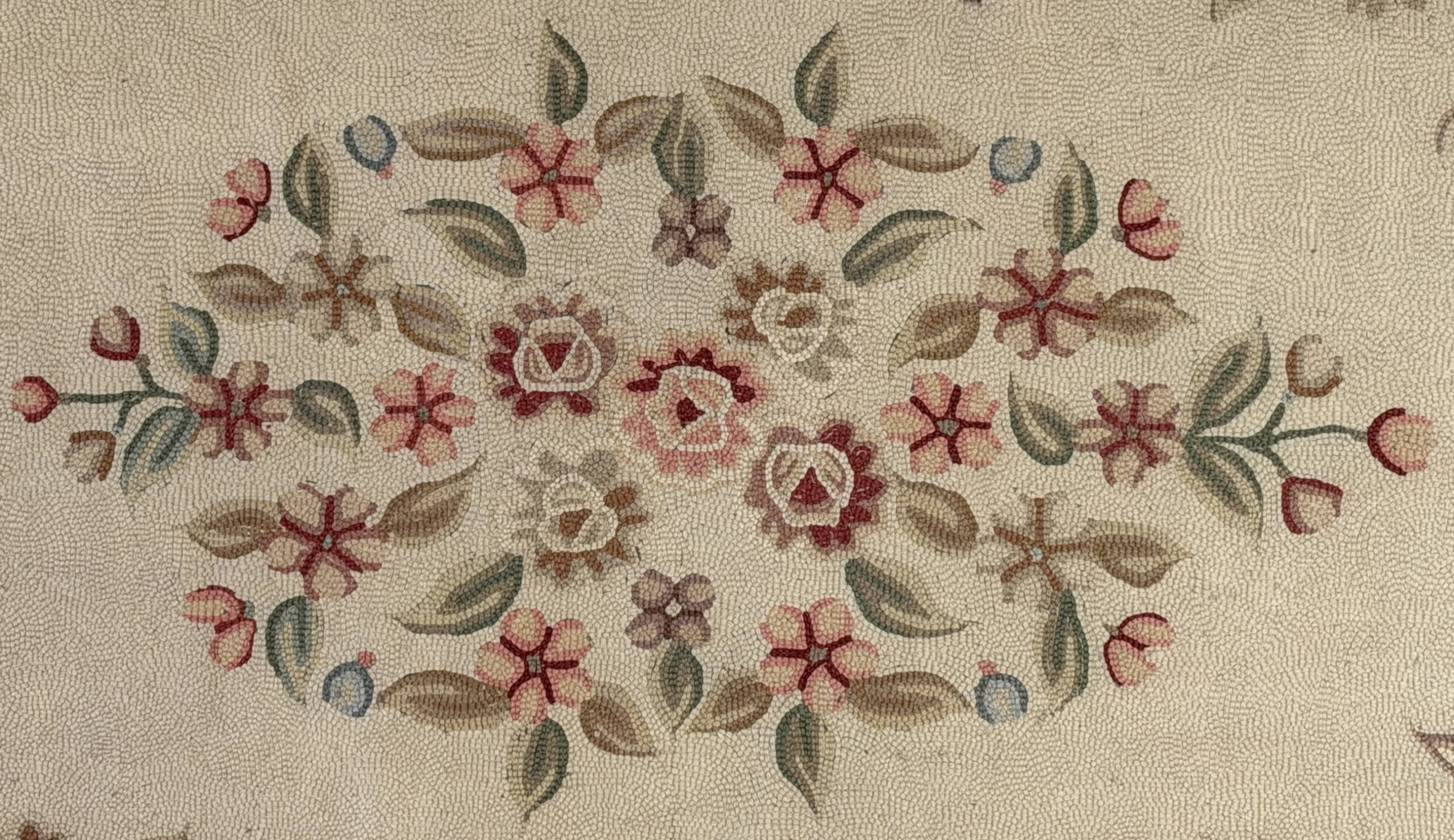 Good Looking Good Old Hand Hooked North American Rug with a Large Central Medallion Floral Design; Made in North America, 1930 – 1950