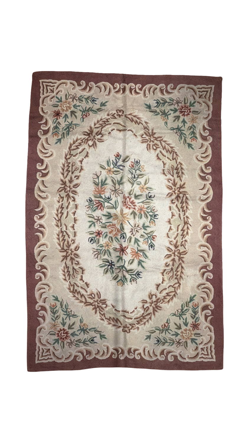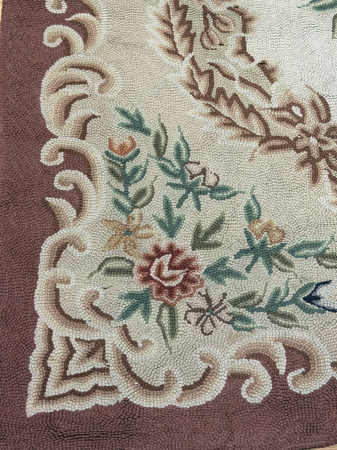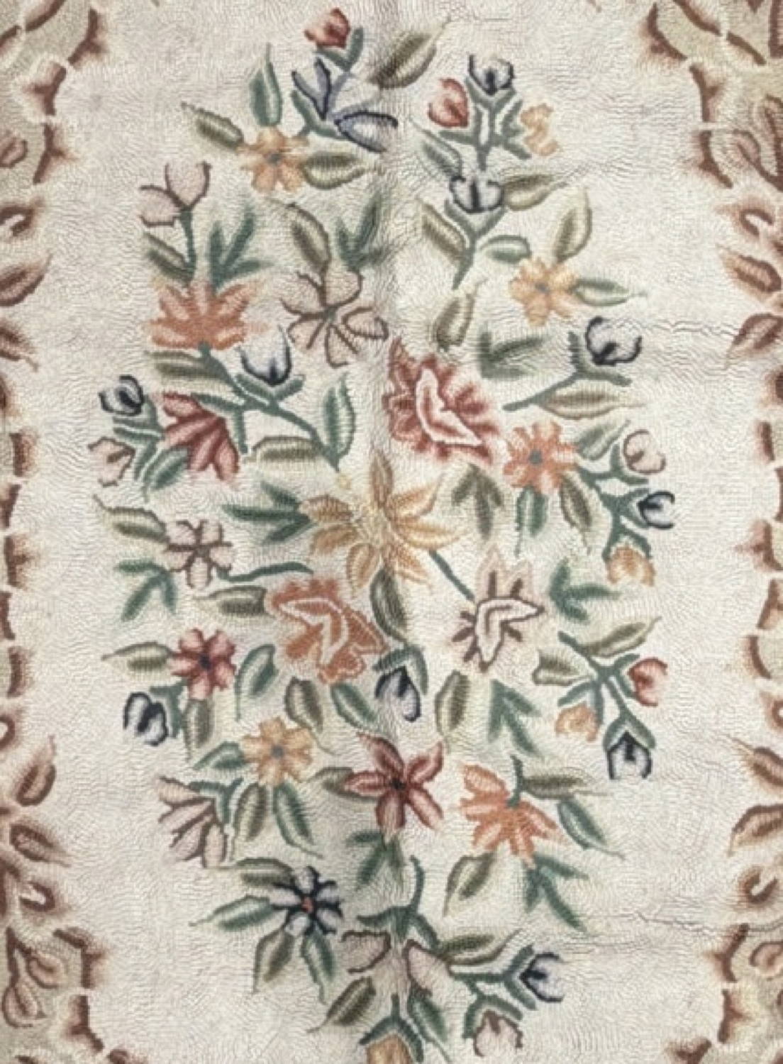 Good Looking Old Hand Hooked Japanese Rug with an Allover Floral Design; Made in Japan (maybe), 1940 – 1950