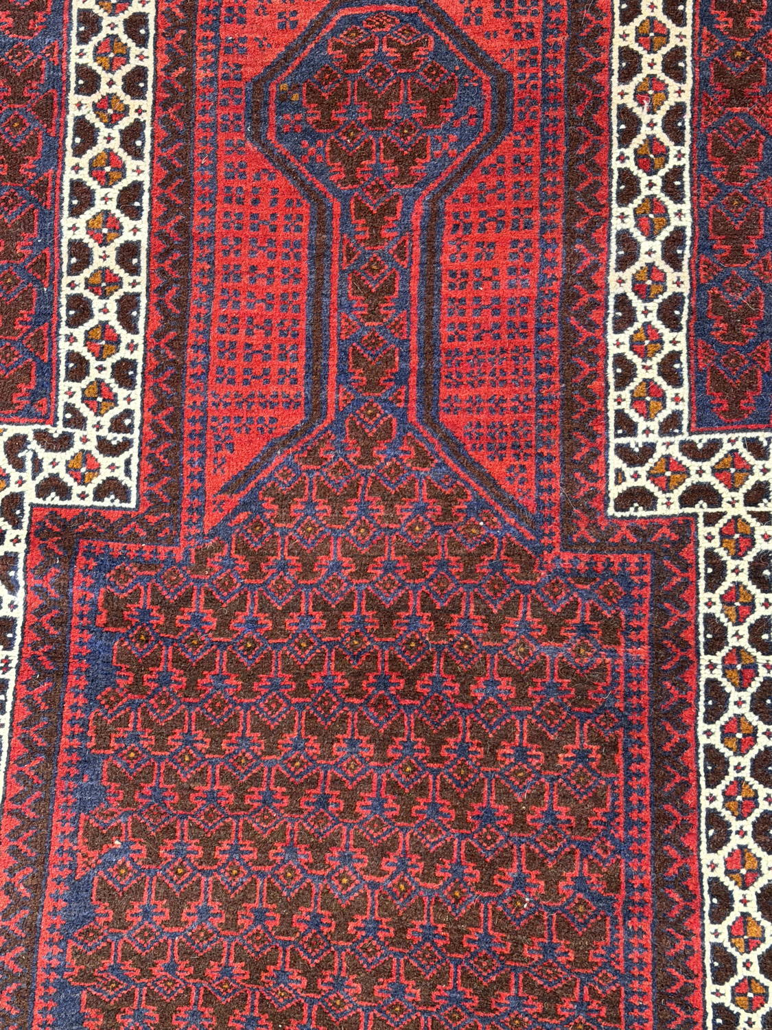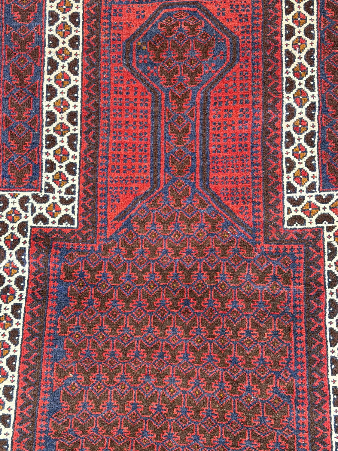 Good Looking Pakistani Balouch with a Repetitious Allover Prayer (Mehrab) Design; Made in Pakistan, 1990 – 2000