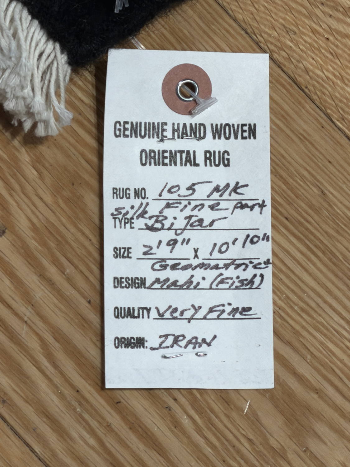 Very Fine Wool & Silk Persian Bijar – 2’9″ x 10’10”