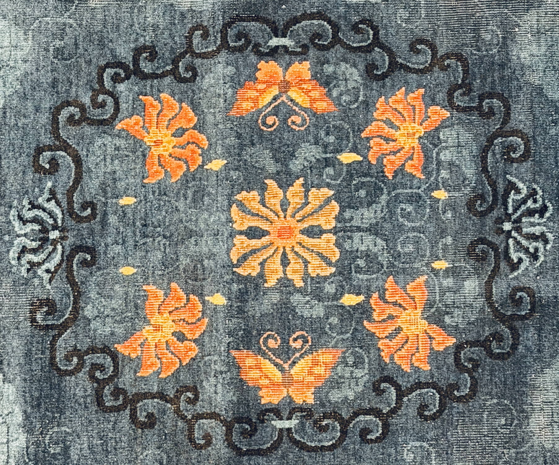 Great Looking Very Good Antique Chinese Nichols with an Open Field Floral Butterfly Design and Pheonixes in the Border; Made in China, 1900 – 1920