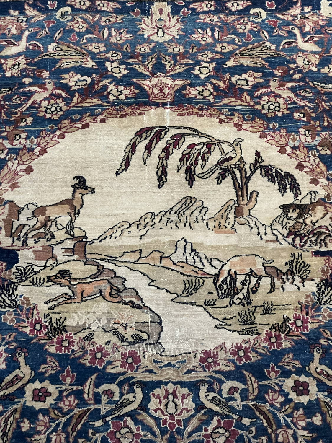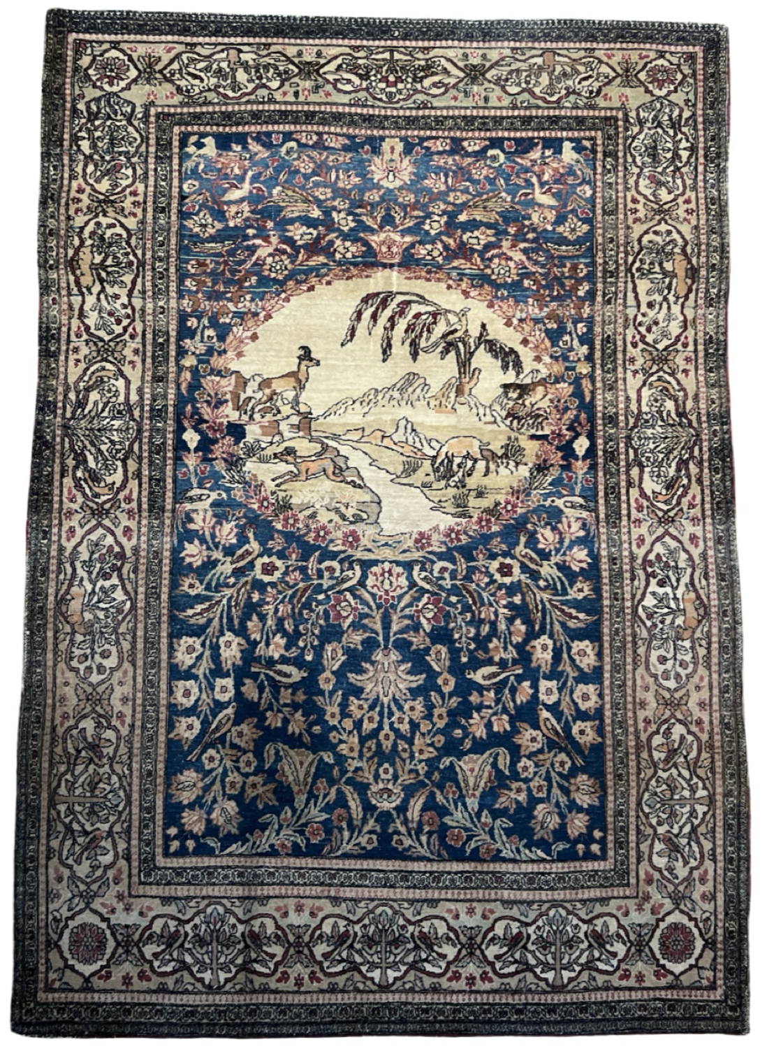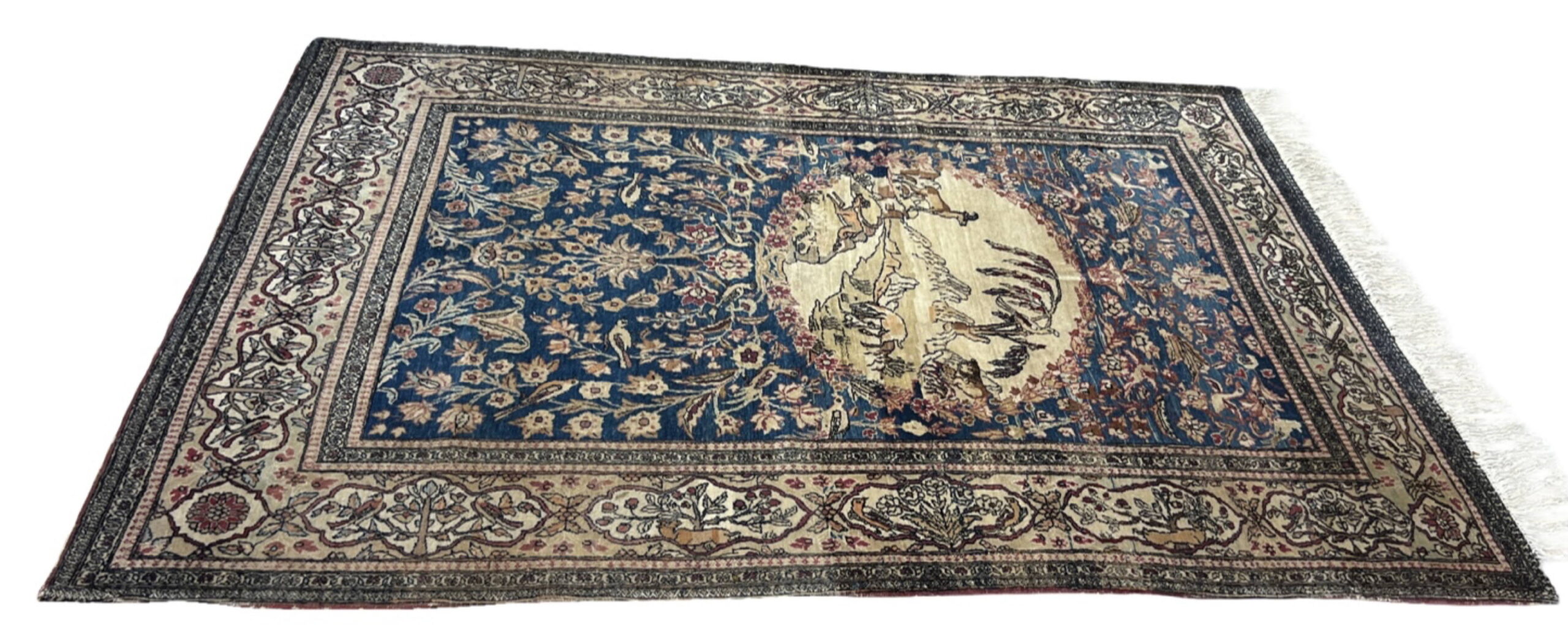 Great Looking Very Good Antique Persian Esfahan with an Allover Floral Design and an Oval Medallion with Animal Scenery; Made in Iran, 1890 – 1900